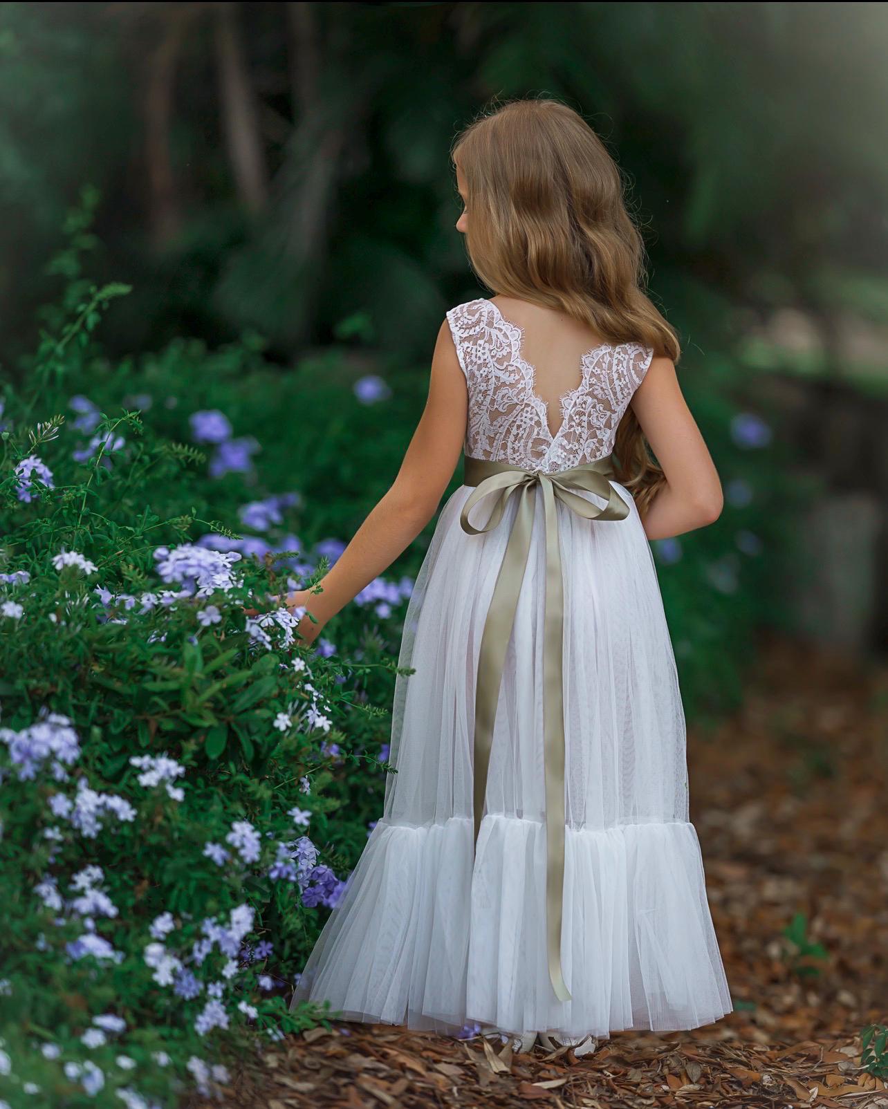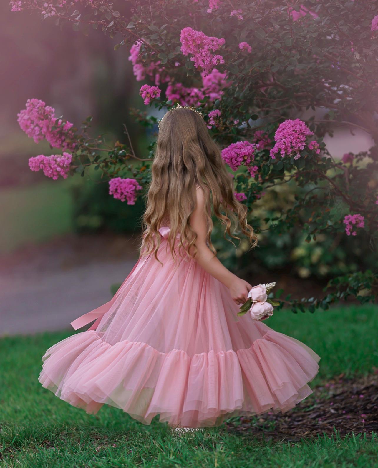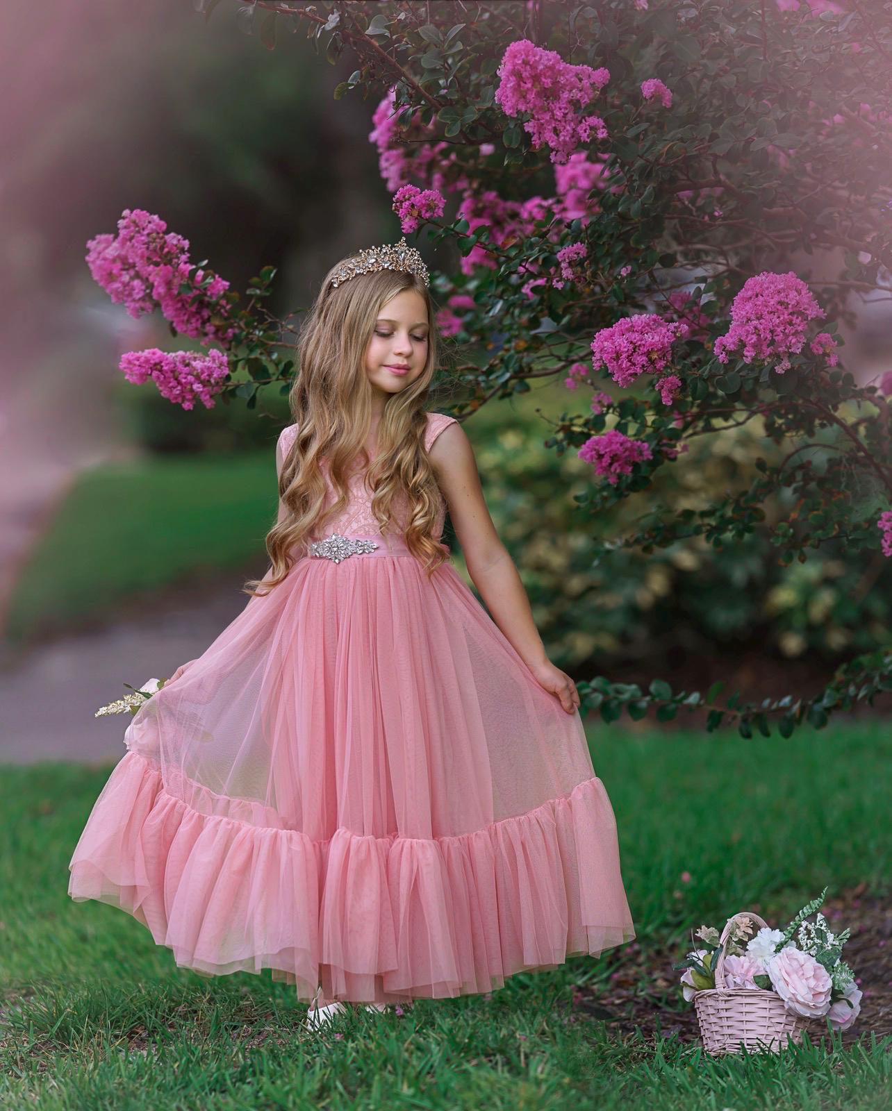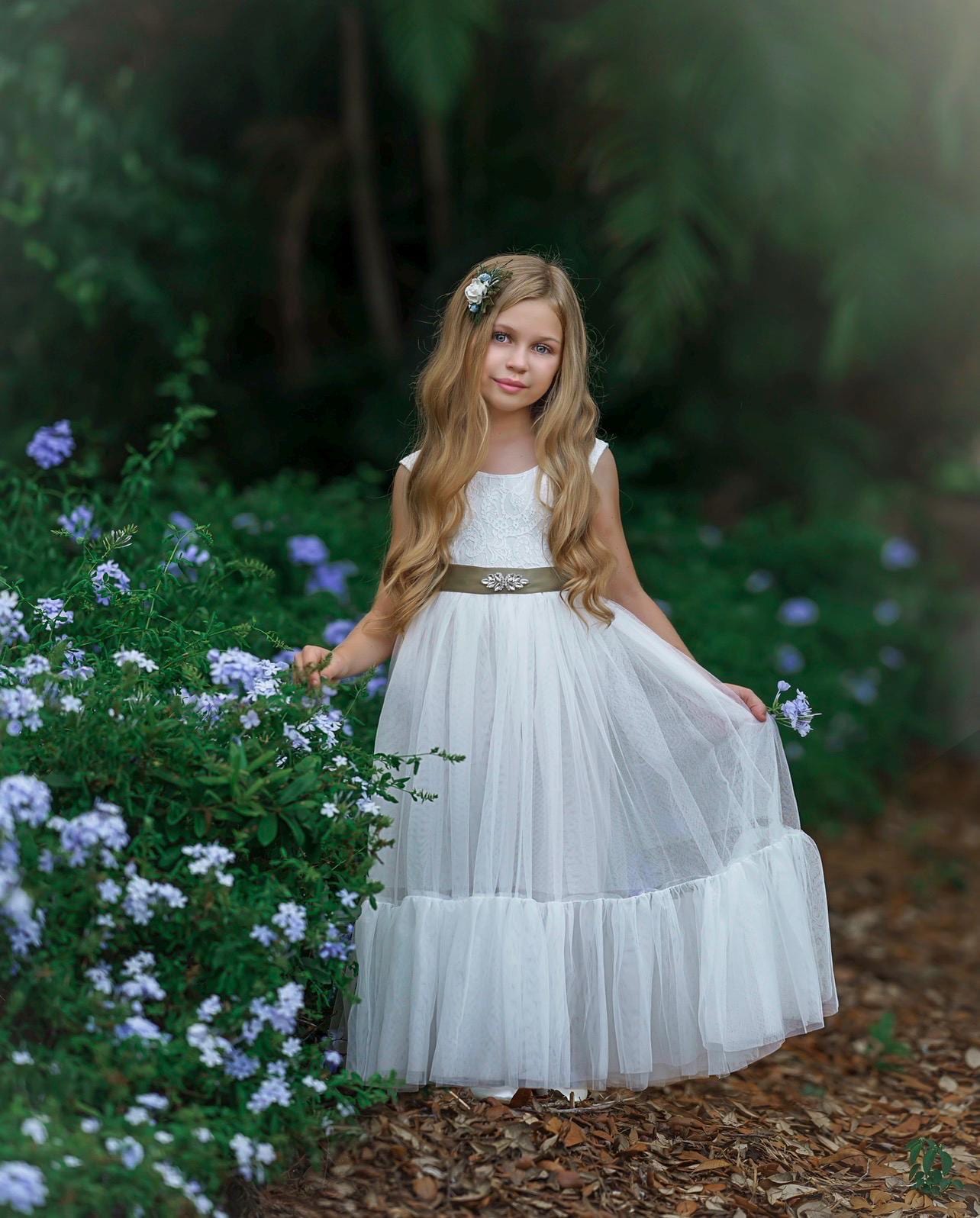 Our enchanting sleeveless tulle flower girl dress, is made with a delicate lace bodice and choice of (3) fully lined, tulle colors: Rose, Sweet Cream or White. Works great for that boho style wedding or beach wedding. We have added a mermaid stye layer to the bottom of the dress for a little extra volume, which make this dress perfect for twirling. Makes a great toddler flower girl dress or junior bridesmaid dress. The V shaped back with scalloped lace edging, adds the perfect amount of boho chic look to this amazing dress. This dress is versatile for any season or event, but perfect for flower girl dresses, photo shoots, daddy daughter dances, baptism and any other special event, she will sure to be the star of the show.
