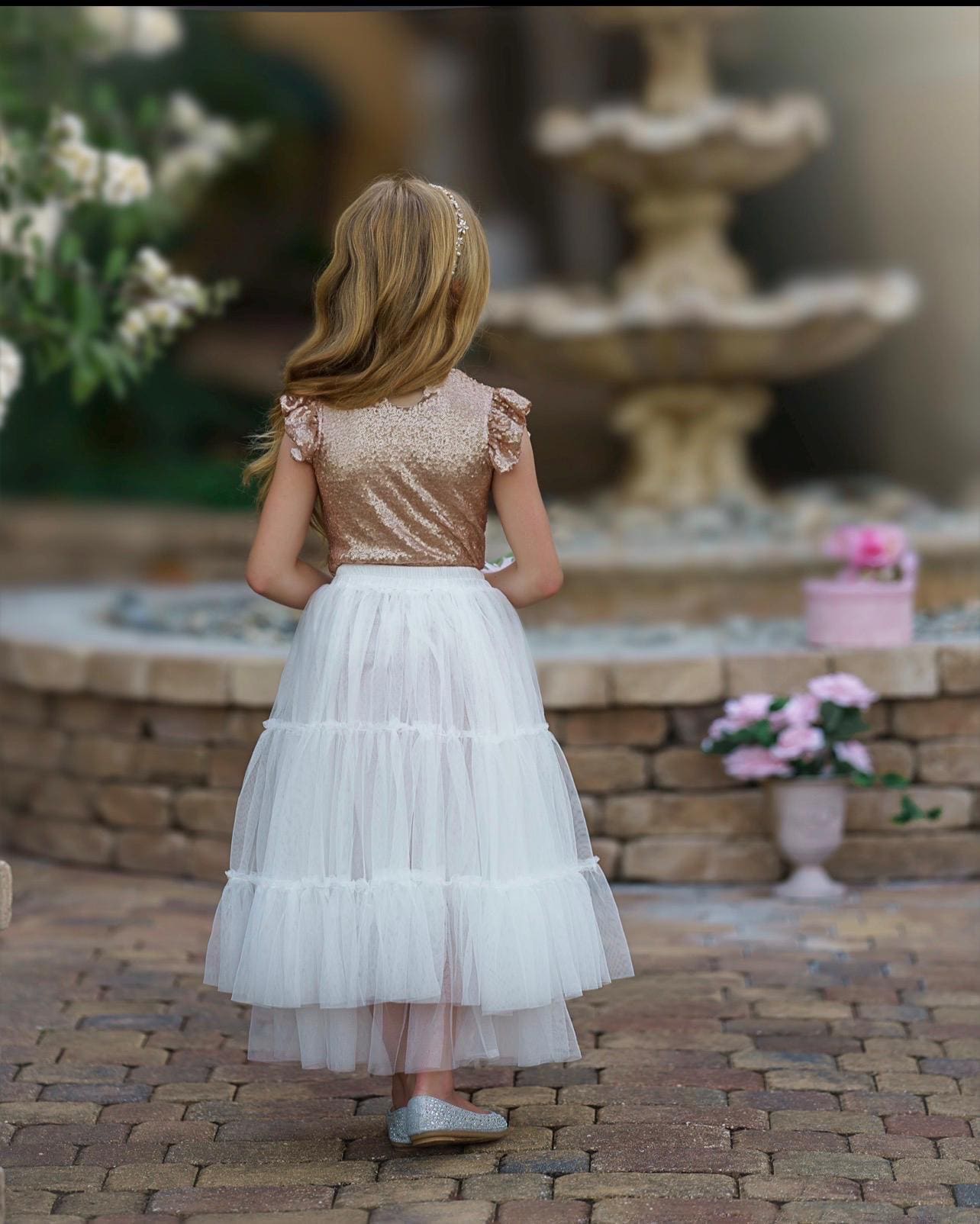 Perfect on its own or paired with a bodysuit, leotard, or knit top, this piece transitions beautifully from dance class to dress-up, celebrations, and photo shoots.