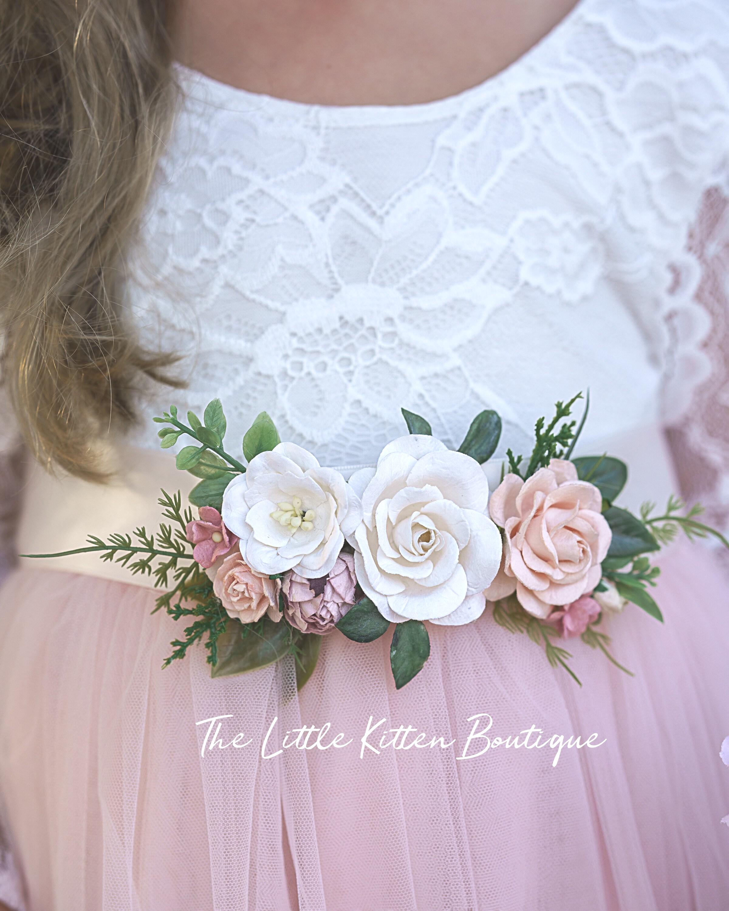 Our gorgeous custom flower sashes are designing especially for you. You can select any colors you wish, we have all colors and shades, except black flowers. We use a variety of roses, poppies, peony, lilies, gardenias, magnolia, sunflowers, various greens and more, to make your custom sash one of a kind. Our sashes are used for weddings, photo shoots, prom's, birthdays and other special events.