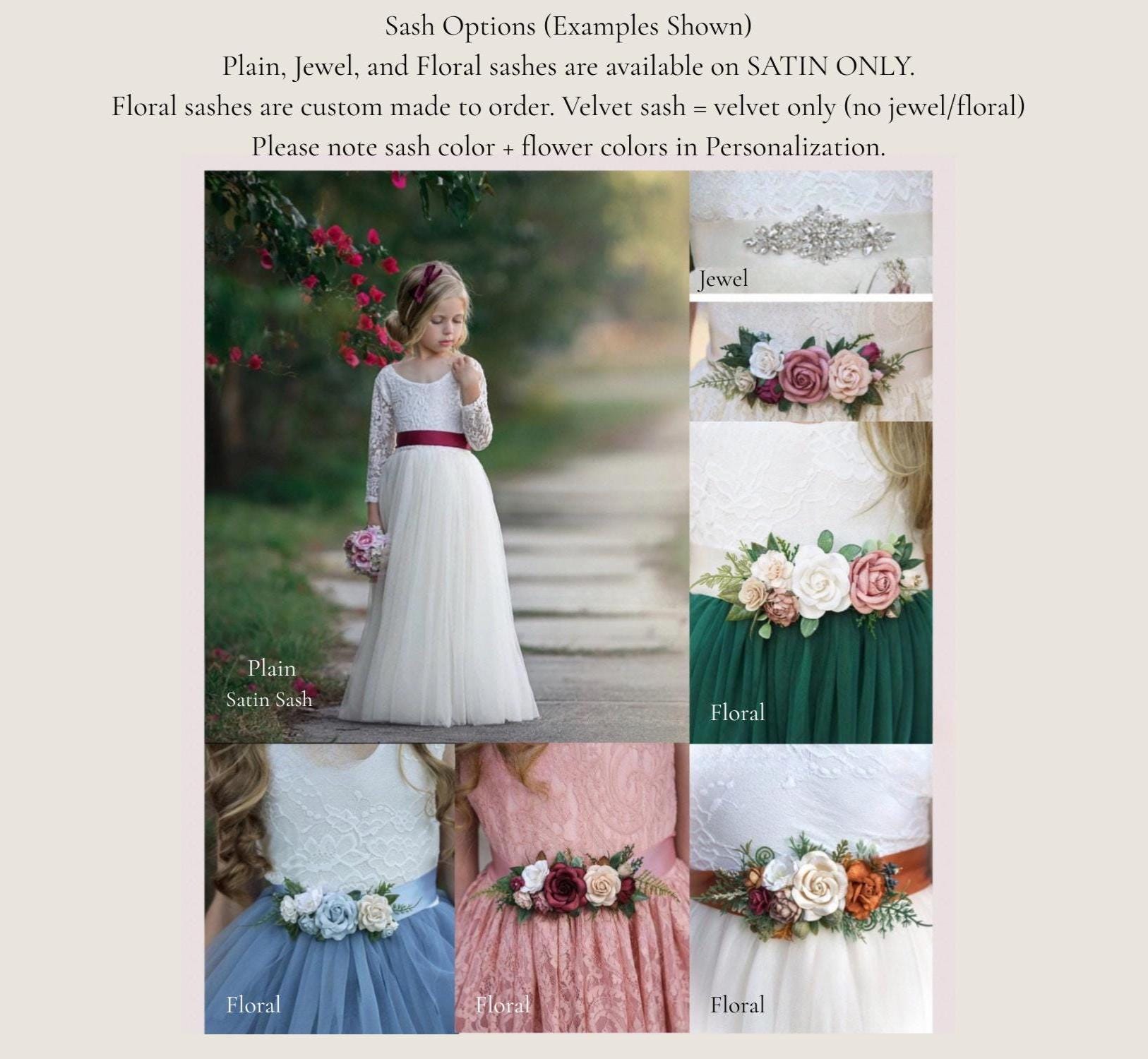 Custom floral sashes, hair wreaths, and combs along with other handmade headbands, are also pictured in the photo section and are combo selections from the first dropdown. The photo section shows examples of previous accessories I have made and other examples can be found in the links below. Our Flower opinions are very detailed and custom made to the colors and style, which we can discuss further in a message or you can simply notate colors and I will create a one of a kind piece, that will add that WOW factor to the overall look. PLEASE NOTE: These Floral Handmade accessories are one of a kind and no 2 pieces are alike. I have most colors available and also offer a variety of greenery, seasonally. HB is the applique headband pictured in the photo section. Crystal would be the crystal tie headband featured on my model with the off white dress.