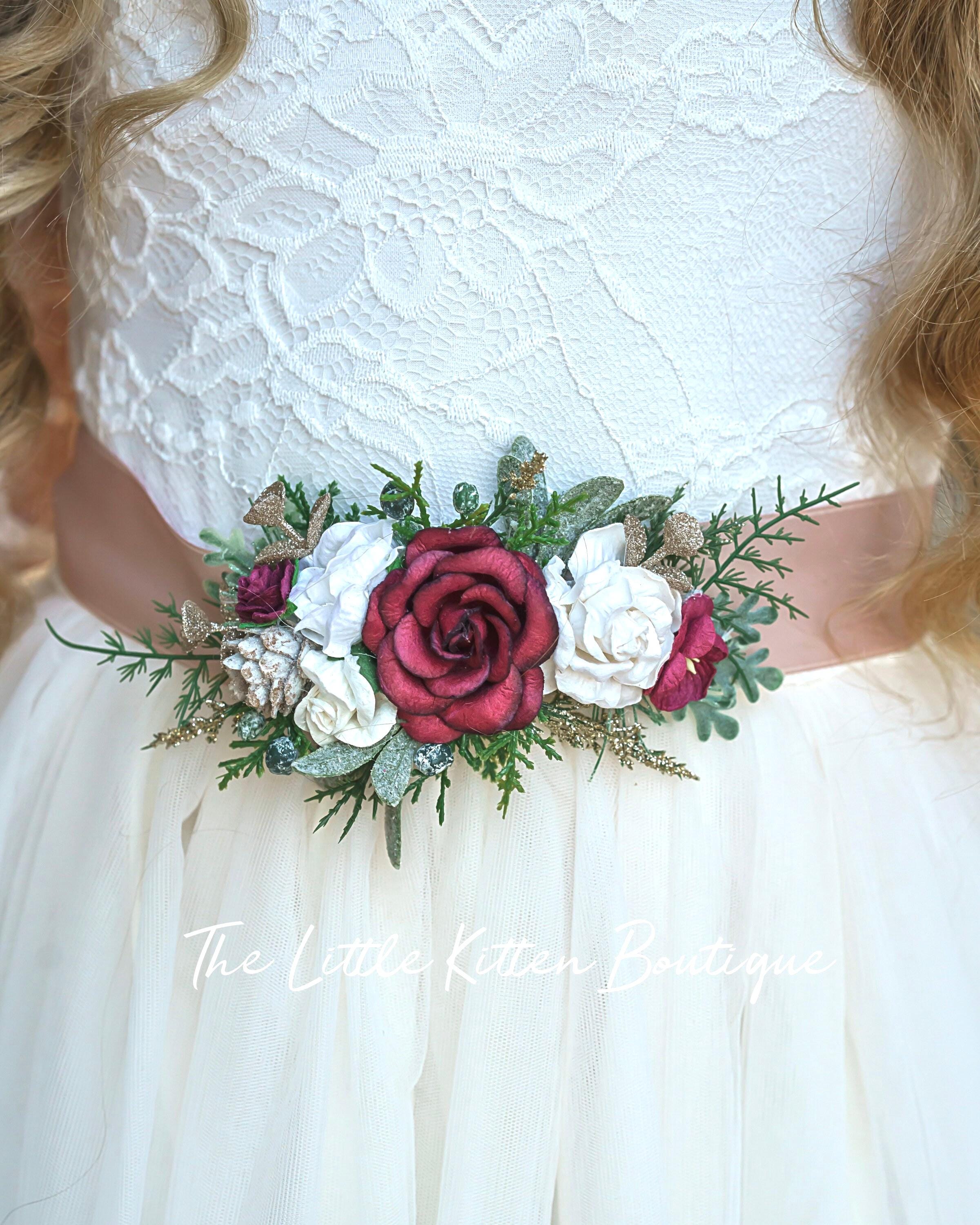 Our gorgeous custom flower sashes are designing especially for you. You can select any colors you wish, we have all colors and shades, except black flowers. We use a variety of roses, poppies, peony, lilies, gardenias, magnolia, sunflowers, various greens and more, to make your custom sash one of a kind. Our sashes are used for weddings, photo shoots, prom's, birthdays and other special events.